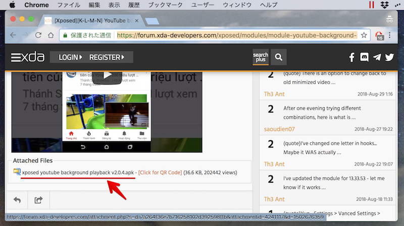 从XDA网站下载“YouTube后台播放”的apk文件。