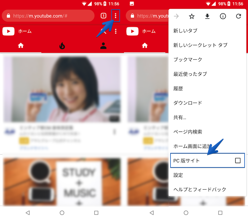 如果您在浏览器应用程序中打开网页版 YouTube 并将显示格式更改为“适用于 PC”,则可以在后台播放视频。