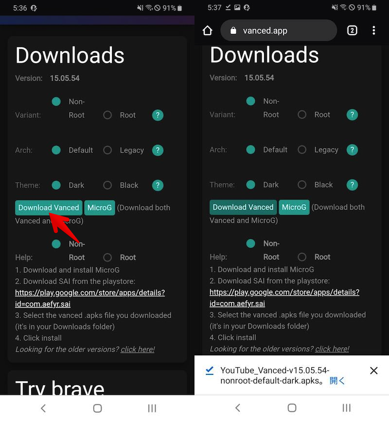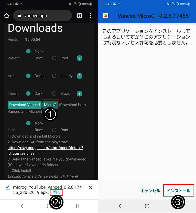 使用方法①:YouTube Vanced安装步骤