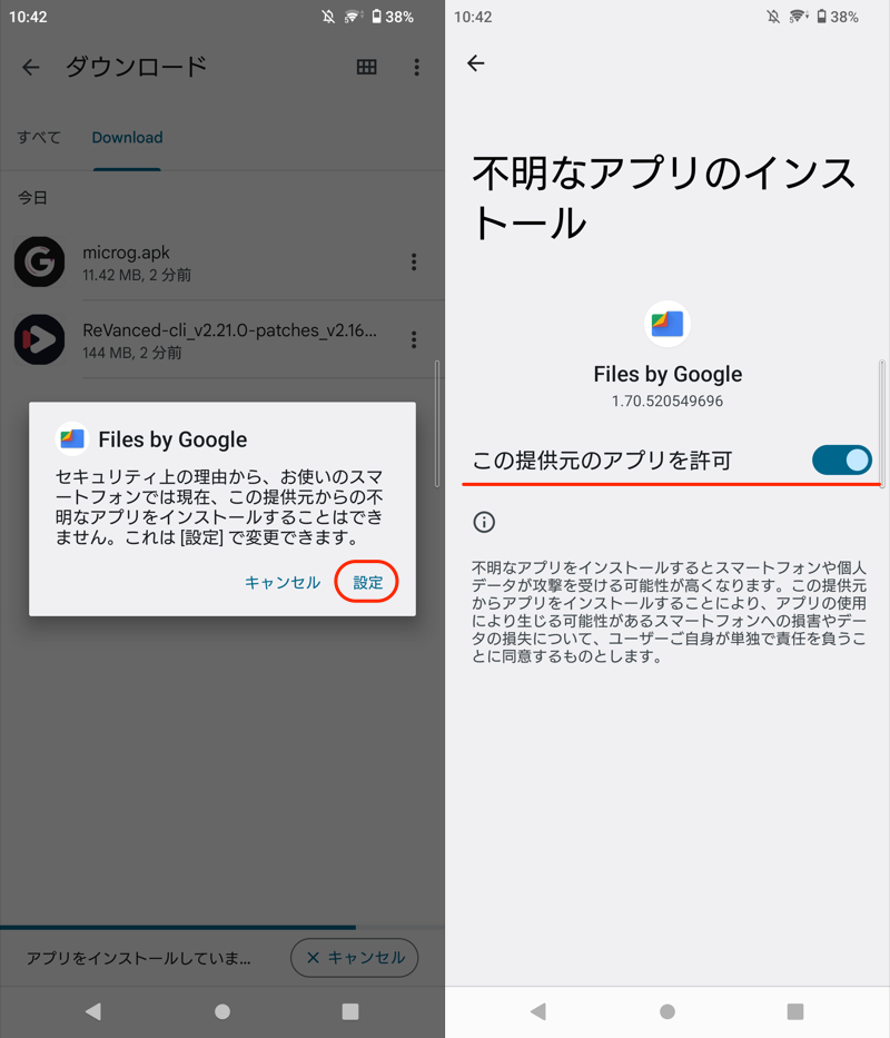 详细内容请参见相关文章【如何在Android上安装未知来源的应用程序!允许使用您的智能手机的 APK 文件] 进行了解释。