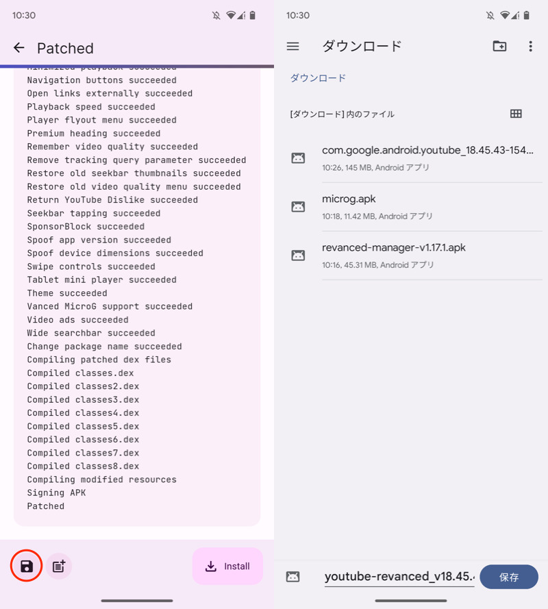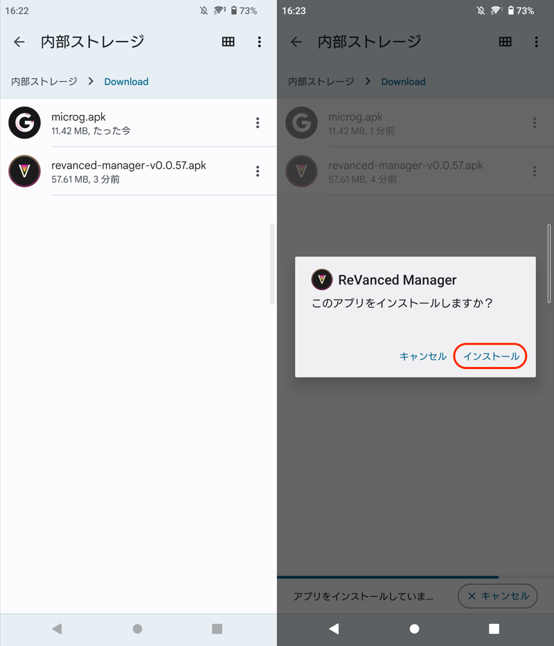 (左)保存在内部存储器中的APK(右)安装屏幕