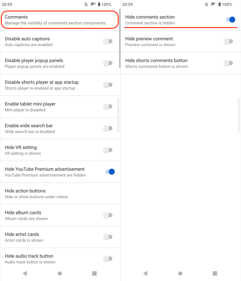 YouTube ReVanced 允许您配置即使在 YouTube Premium 上也无法使用的各种功能。