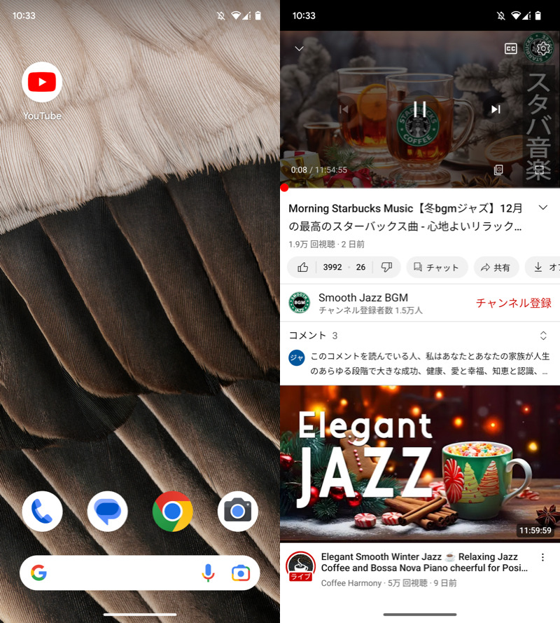 (左)看起来就像普通的 YouTube (右)没有广告的播放